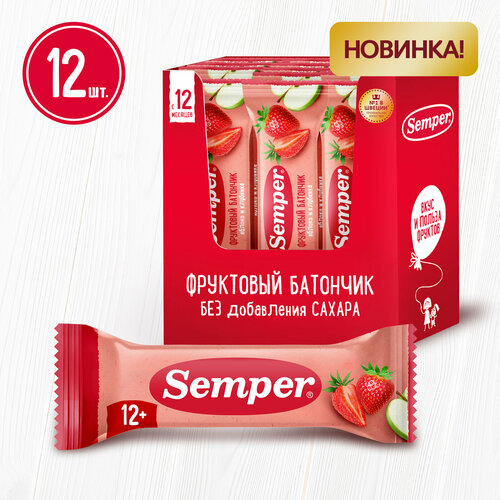 Детский фруктовый батончик Semper Яблоко-Клубника без добавления сахара, с 12 месяцев, 15г х 12 шт