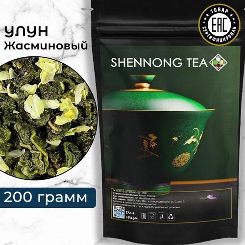 Настоящий Китайский Чай Улун Жасминовый, 200 гр, Зеленый Рассыпной Листовой Оолонг с Лепестками Цветов от Shennong Tea