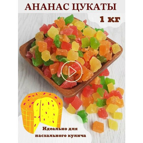 Цукаты ананас кубики, смесь цукатов разноцветная для кулича, для выпечки сухофрукты, подарок женщине