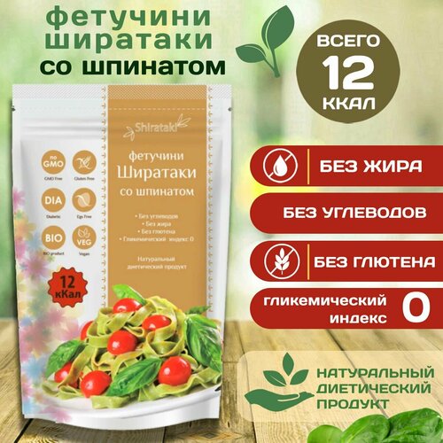 Макаронные изделия "Ширатаки" Феттуччине со шпинатом 340 грамм