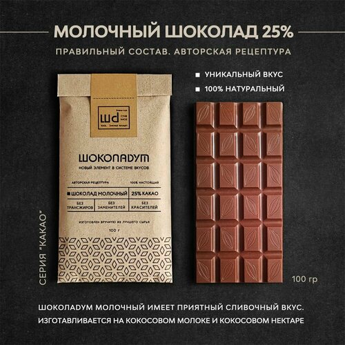 Молочный шоколад 25% на урбече из кешью, 100 гр