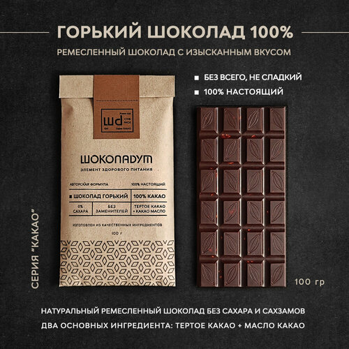Горький шоколад 100% без наполнителей и орехов, без сахара, 100 гр