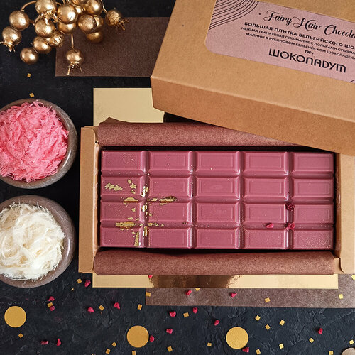 "Волосатый" шоколад Fairy Hair розовый, гранат-малина, 190 гр.