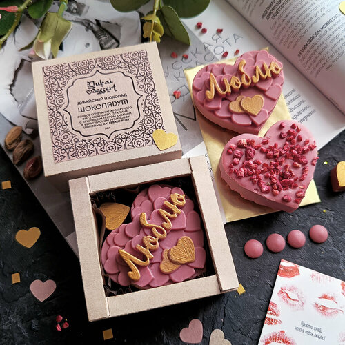 Дубайский шоколад "Люблю" с фисташковой начинкой из Рубинового шоколада, 50 г