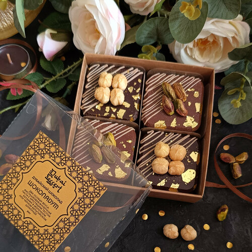 "Дубайский набор шоколада" — 4 плитки, 2 вкуса Фисташка и Фундук, 320г