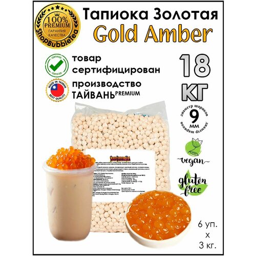 Тапиока 3 кг. 6 шт. янтарное золото, классическая, шарики для бабл ти bubble tea