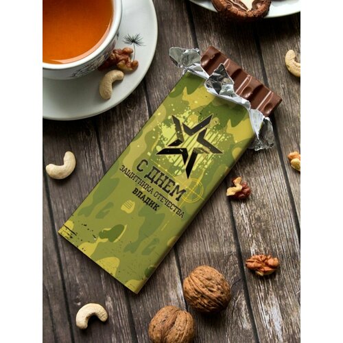Шоколад молочный "Защитнику" Владик подарок мужчине папе другу на 23 февраля день рождения