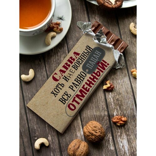 Шоколад молочный "Отменный" Савелий подарок мужчине папе другу на 23 февраля день рождения