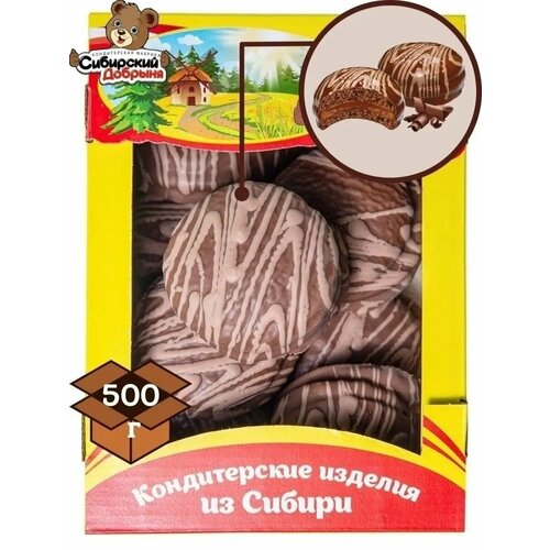 Печенье бисквитное мулатка-латка, прослоенное начинкой со вкусом шоколада в темной глазури, 500 г , мишка в малиннике , Сибирский добрыня