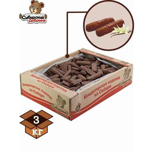 Печенье бисквитное в темной глазури шоло, прослоенное начинкой "Сгущенка вареная", 3 кг , мишка в малиннике , Сибирский добрыня