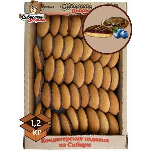 Печенье сдобное бискви-шок с начинкой желе со вкусом черники в темной глазури, 1,2 кг , мишка в малиннике , Сибирский добрыня