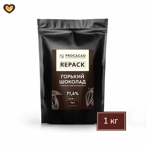 Шоколад горький Sicao N72 REPACK 71,6%, кондитерский, 1 кг (Сикао)