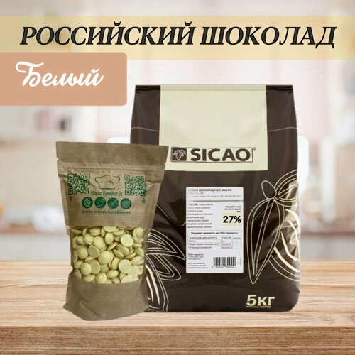 Шоколад белый Sicao R28 (Сикао) 28%, пак 2,5кг, фирменная фабричная упаковка, Бельгия / Италия