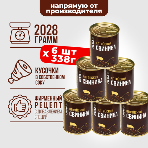 Свинина тушеная кусковая в собственном соку Алтайская 6 шт*338 г
