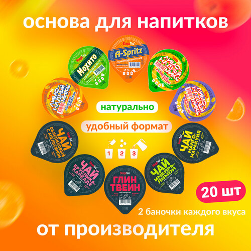 Порционные основы для напитков SimpaTea ассорти микс из 10 вкусов Манго-маракуйя, Облепиха с апельсином, Имбирь-лимон, Брусника-каркаде, Глинтвейн, A-Spritz, Имбирный цитрус, Мохито 20 шт