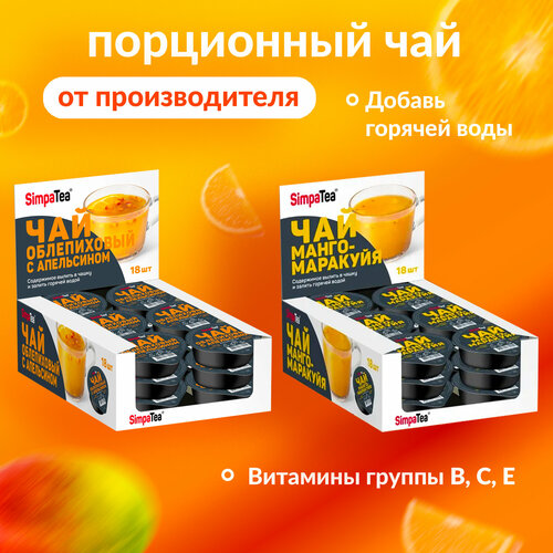 Чай порционный набор Simpa Tea 2 вкуса облепиха манго 36 баночек по 45 г Облепиха с апельсином и Манго-маракуйя