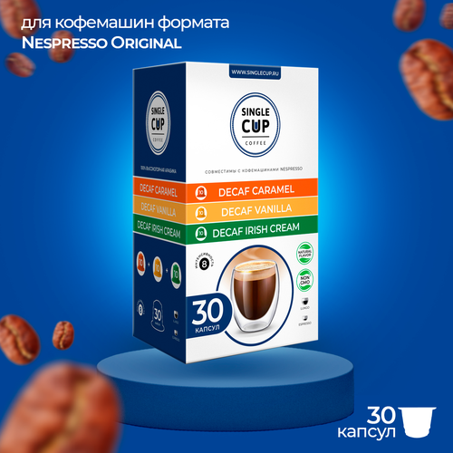 Кофе в капсулах для кофемашин Nespresso Original формат "Decaf Caramel, Vanilla, Irish Cream" 30 шт. Single Cup Coffee