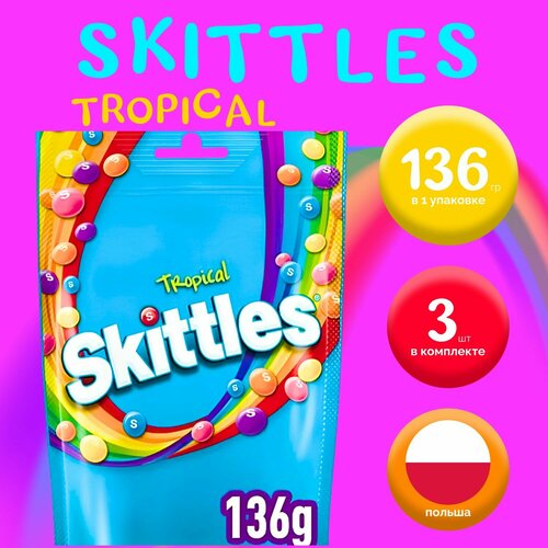 Skittles Драже Wild Berry Тропические Фрукты, Скителс (136 гр.) х 3 шт.