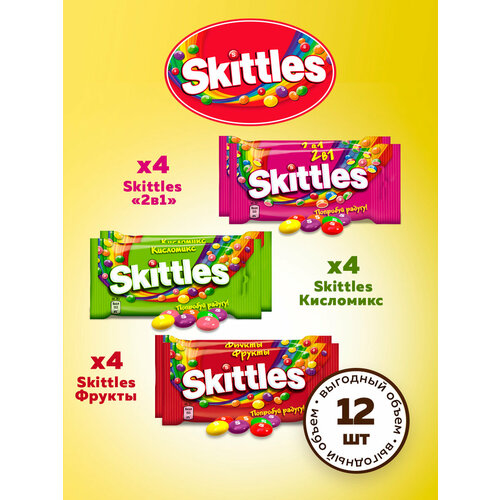 Драже Skittles Фрукты / 2в1 / Кисломикс 38г. х 12 шт.
