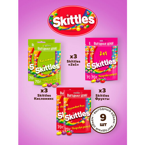 Драже Skittles Фрукты / 2в1 / Кисломикс 70г. х 9 шт.