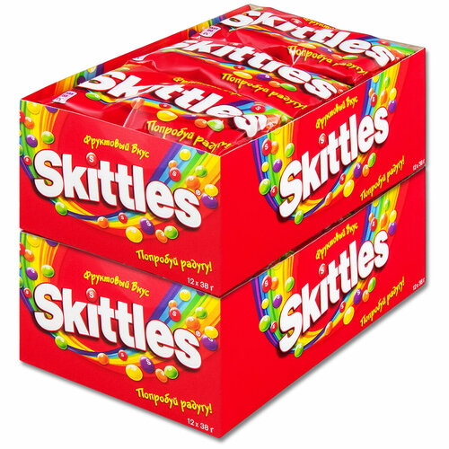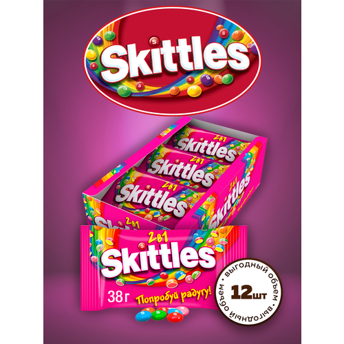 Драже Skittles 2в1, ягодные, фруктовые, 38 г х 12 шт