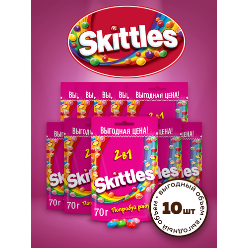 Драже Skittles 2в1, ягодные, фруктовые, 70 г х 10 шт