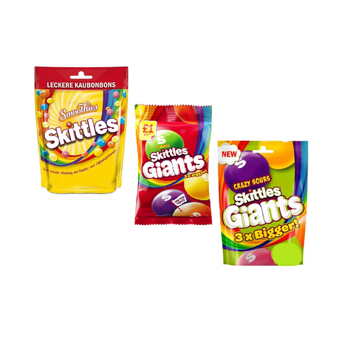 Набор жевательных конфет "Skittles" Gigants, Giants crazy sours, Smoothie./ Гигант, кислый гигант, смузи.