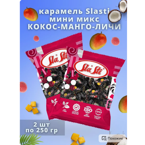 Карамель мини леденцовая микс со вкусом личи, кокоса, манго , 2 шт по 250 гр