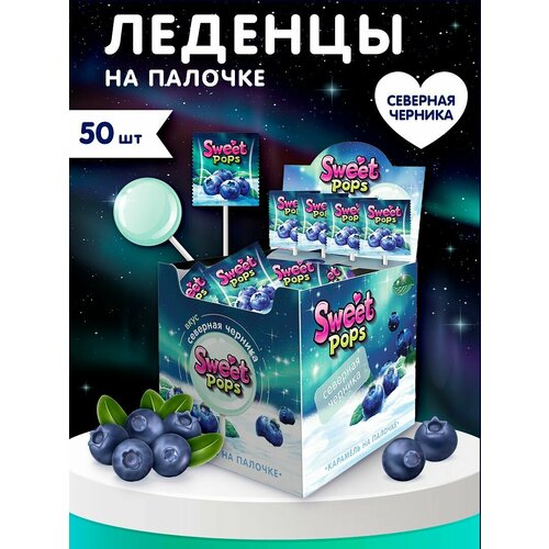 Леденцы на палочке Новогодние морозная северная черника, 10 г, 50шт.