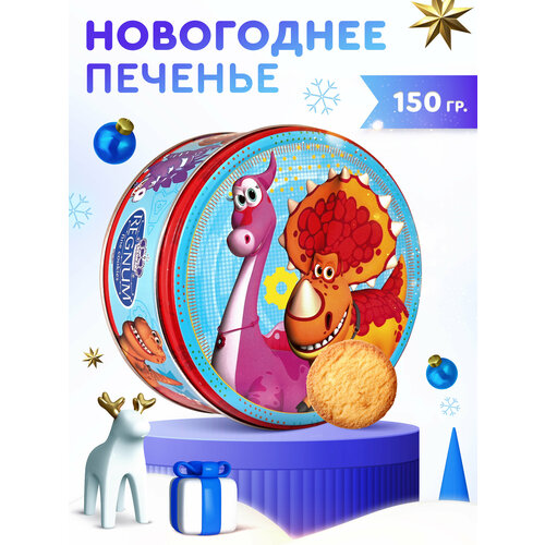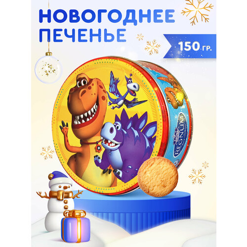 Печенье в жестяной банке новогоднее сдобное Турбозавры, 150г