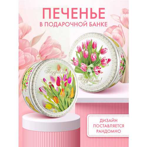 Печенье в подарок Тюльпаны сдобное со сливочным маслом в жестяной банке, Россия, 400 г