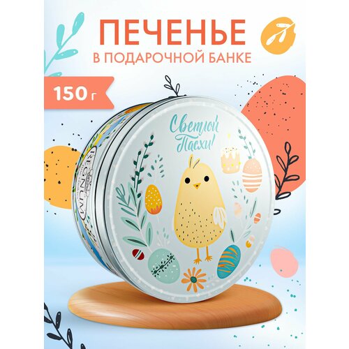 Печенье Пасхальное "Цыпленок" сдобное в жестяной банке с сахарной обсыпкой на подарок к чаю 150 грамм