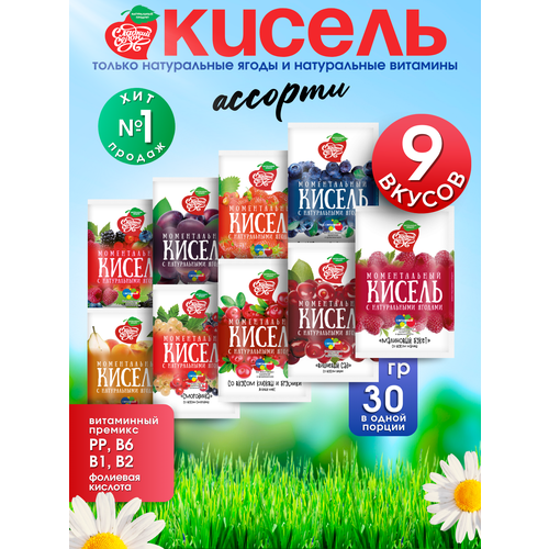 Набор киселей в пакетиках быстрорастворимых. Ассорти ягодных вкусов. 270 грамм. 9 шт.
