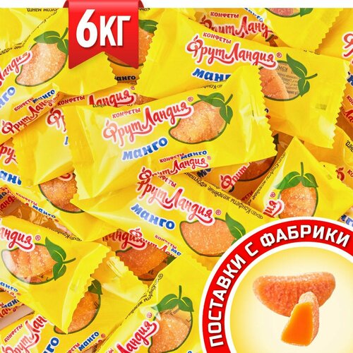 Конфеты Фрутландия в форме долек со вкусом манго ТМ Славянка 6 кг