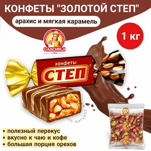 Конфеты шоколадные Степ золотой с арахисом 1 кг нежный молочный шоколад