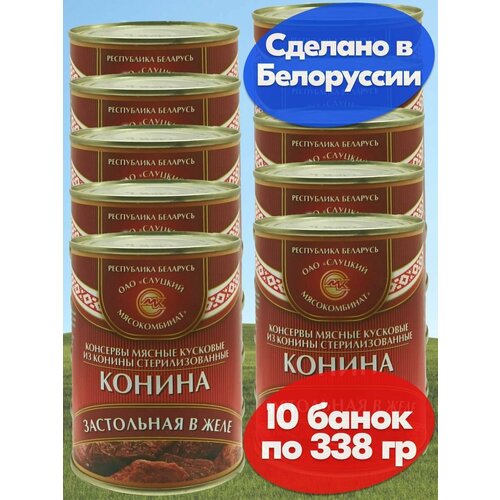 Конина застольная в желе Слуцкий МК , 10 банок 338 грамм тушенка.