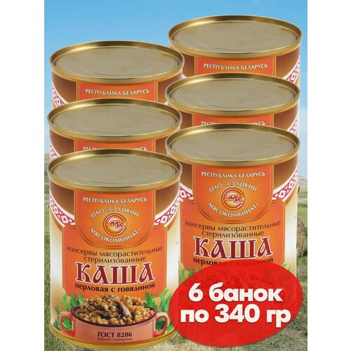 Каша перловая тушенка с говядиной 6 банок по 340 грамм, Слуцкий МК