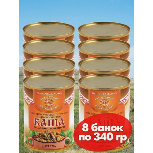 Каша перловая тушенка с говядиной 8 банок по 340 грамм, Слуцкий МК