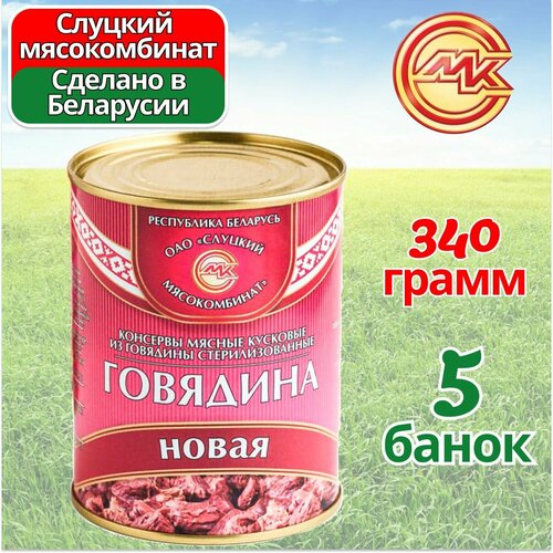 Говядина тушеная Новая тушенка 5 банок по 338 грамм, Слуцкий МК