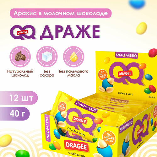 Драже SNAQ FABRIQ QQ с арахисом и молочным шоколадом без сахара, 40г х 12шт