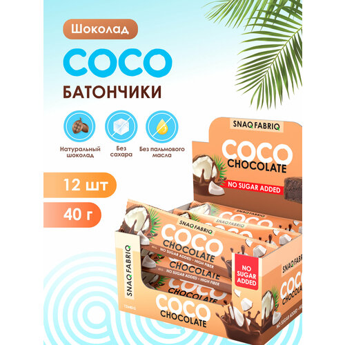Кокосовые батончики Snaq Fabriq COCO без сахара "Кокос и Шоколад", 12шт х 40г
