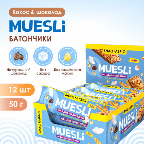 Батончики мультизлаковые в шоколаде без сахара SNAQ FABRIQ Мюсли с кокосом, 12шт х 50г