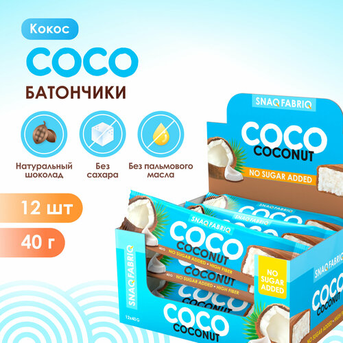 Кокосовые батончики Snaq Fabriq сосо в шоколаде без сахара "Кокос", 12шт х 40г