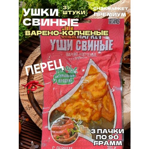 Ушки свиные к пиву Перец Чили 3 шт по 90 грамм "Снек Маркет"