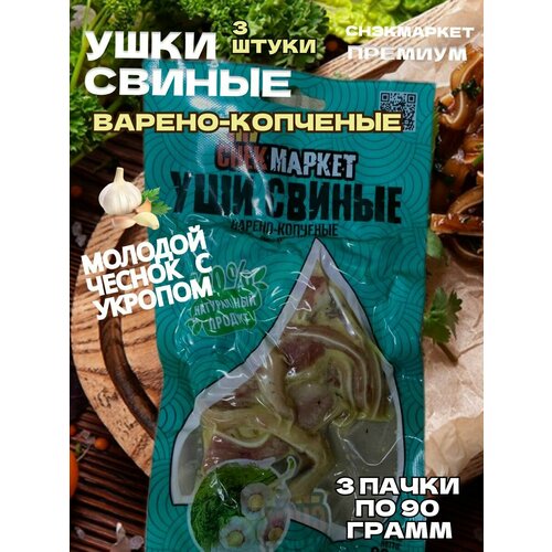 Ушки свиные к пиву Молодой чеснок с укропом 3 шт по 90 грамм "Снек Маркет"