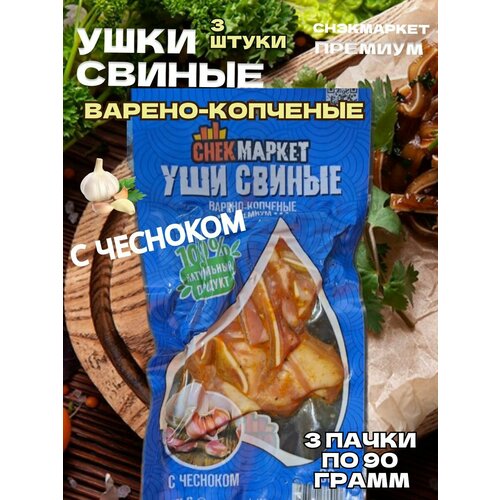 Ушки свиные к пиву с Чесноком 3 шт по 90 грамм "Снек Маркет"