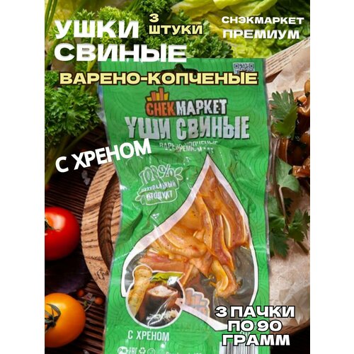 Ушки свиные к пиву с Хреном 3 шт по 90 грамм "Снек Маркет"