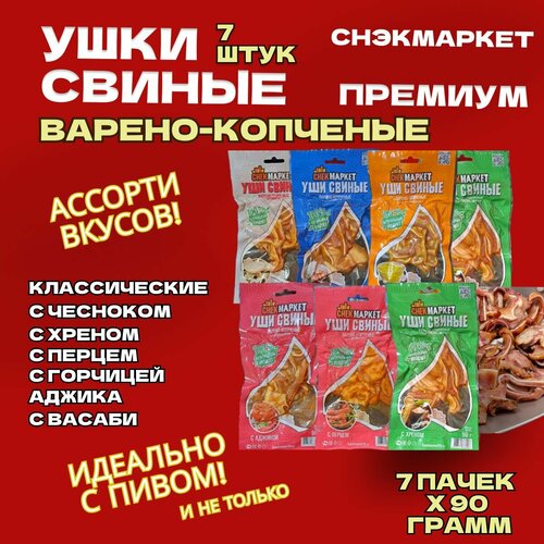 Ушки свиные к пиву "СнекМаркет" Ассорти 7 шт по 90 грамм