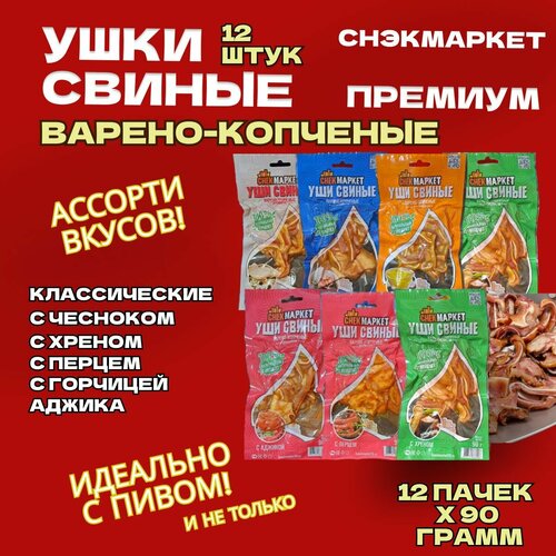 Ушки свиные к пиву "СнекМаркет" Ассорти 12 шт по 90 грамм