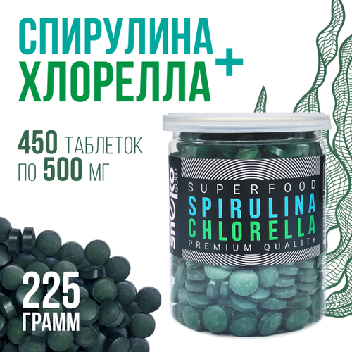 Спирулина и хлорелла в таблетках 450 шт по 500 мг, 225 г